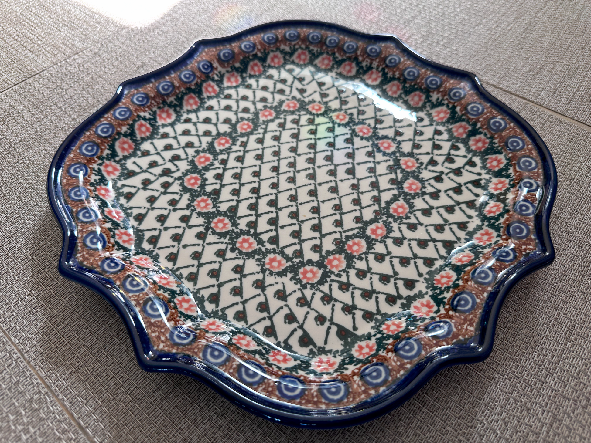 Whether used as a serving platter for appetizers, desserts, or as a stunning display piece, this round Unikat platter delivers both function and folk-art beauty. A timeless addition for collectors and entertainers alike.