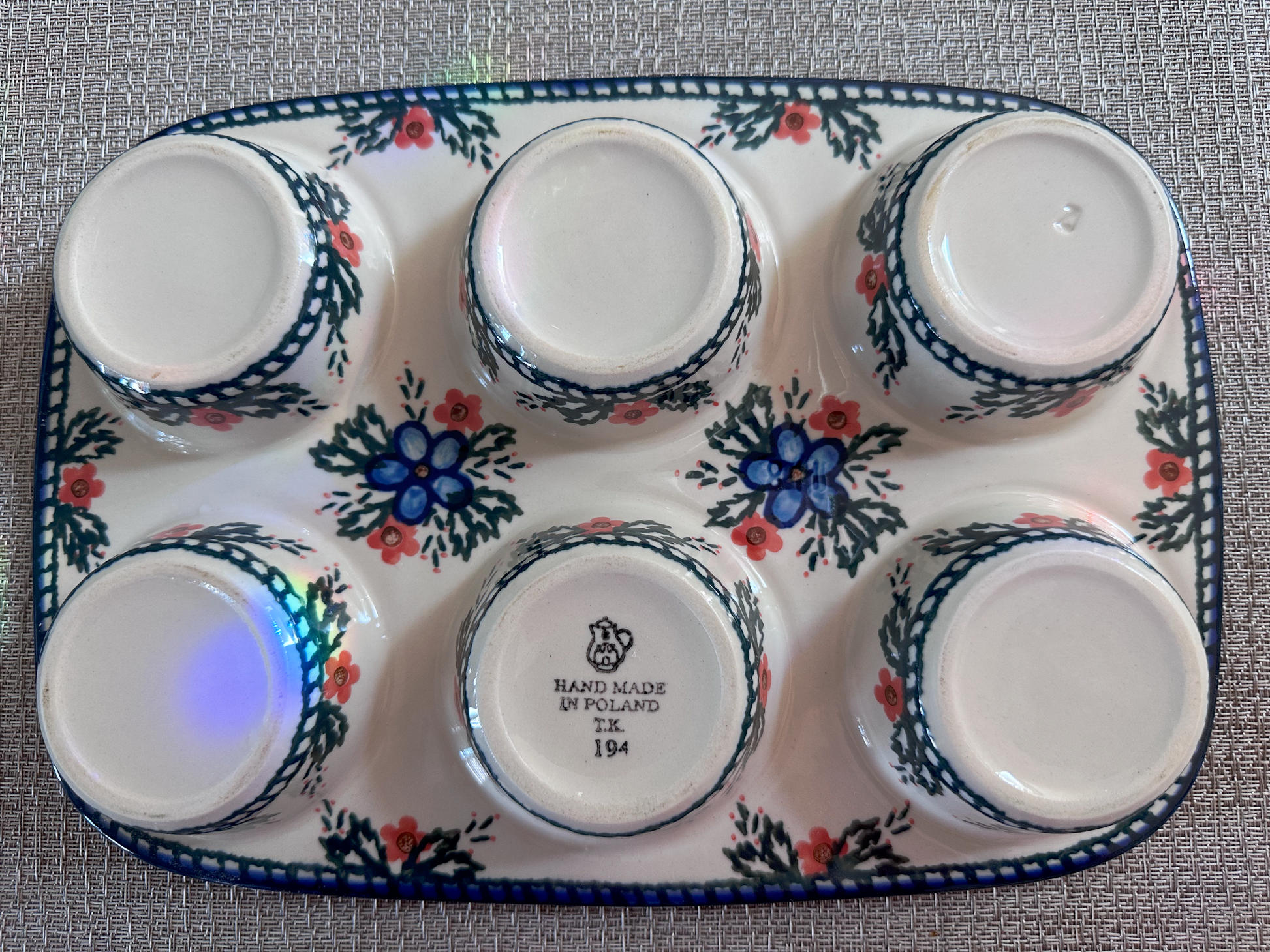 Bring beauty and utility together in your kitchen with this 6-Partition Muffin Baker, handcrafted by the master artisans of Ceramika Artystyczna in Bolesławiec, Poland. With six individual wells, this unique rectangular baker is ideal for muffins, cupcakes, egg bites, or mini quiches—adding handcrafted charm to every bite.