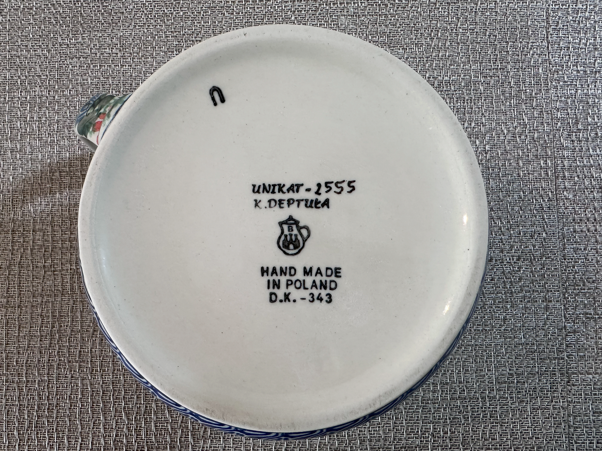 Bring authentic European charm to your kitchen or table with this beautifully handmade and artist-signed Polish Pottery pitcher from Ceramika Artystyczna, featuring Unikat #2555 and painted by renowned artisan K. Deptuka. This functional piece blends everyday utility with heirloom-quality craftsmanship.