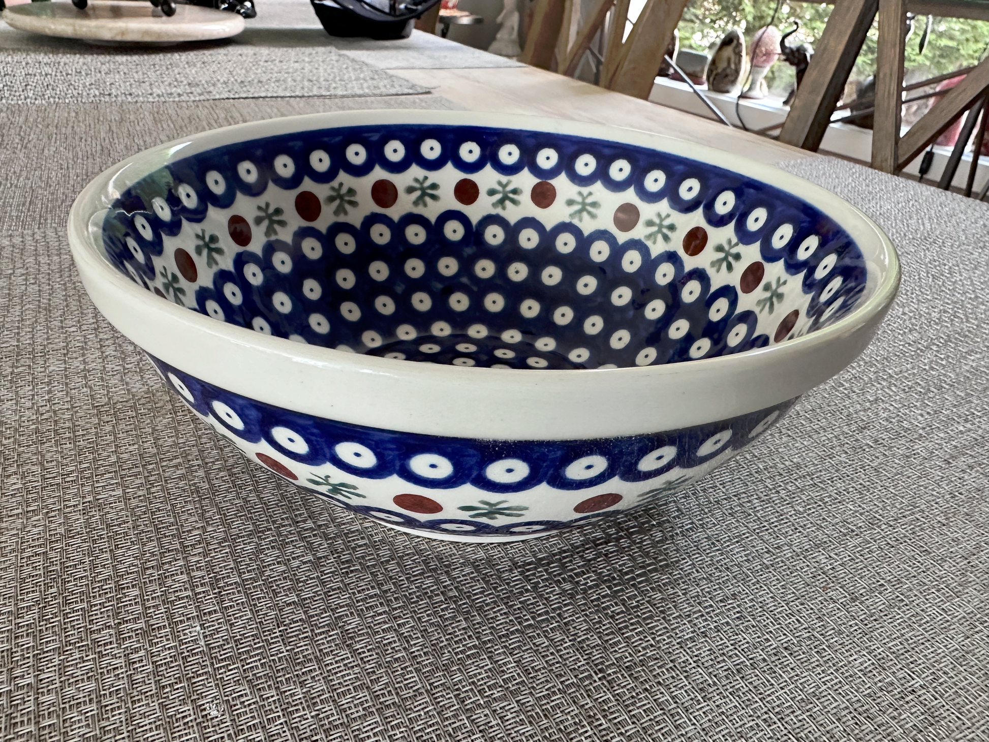 Perfect for serving salads, side dishes, pasta, or fruit, this versatile bowl is both a practical kitchen staple and a collectible piece of Polish ceramic art. A beautiful addition to any "Mosquito" pattern collection or standalone centerpiece for your table!